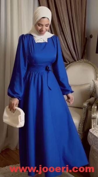 يعتبر اللون الأزرق من الألوان الملكية منذ أقدم العصور وسيكون من المميز أن نختاره ضمن أفضل الألوان في دريسات تفصيل، فمثلًا التصميم الموجود في الصورة بالرغم من كونه خاليًا من مظاهر البهرجة بالكامل إلا أنه يخطف الأنظار فعليًا من رقته.
